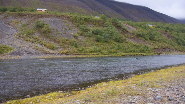 Mógilsbreiða er mjög stór breiða, efst er strengur sem liggur með austurlandinu þar neðan við er einn fallegasti veiðistaður árinnar að mínu mati. Þarna getur fiskur legið um alla breiðu,en um miðja breiðu eru steinar austan við miðja á sem standa upp úr í venjulegu sumarvatni, við þessa steina liggur alltaf lax og stekkur hann oft og gleður það óneitanlega augu veiðimanna. Þarna liggur laxinn oftast með austurlandinu talsvert fyrir ofan við þessa steina og alveg niður á brot. Þarna þarf því að passa að vaða ekki of langt út í fyrstu umferð. Þetta er góður flugustaður. (-SG-)